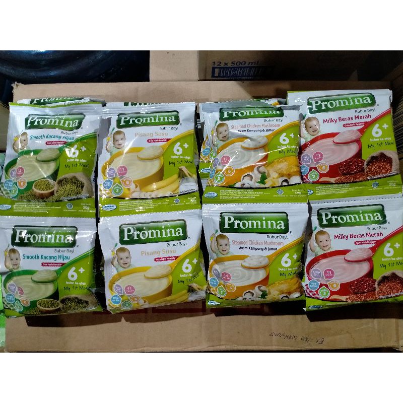 Promina bubur bayi beras merah memiliki tekstur halus untuk pengenalan makanan padat. Campurkan dengan 125 ml air masak panas 70oc 3. Produk bubir bayi instaan ini hadir dalam kemasan sachet yang praktis. Bubur promina tersedia dalam berbagai varian rasa. Data yang disajikan di atas merupakan data yang terdapat pada kemasan 100 g (4 sachet @ 25 g) dengan takaran saji 25 g (4 sajian per kemasan).